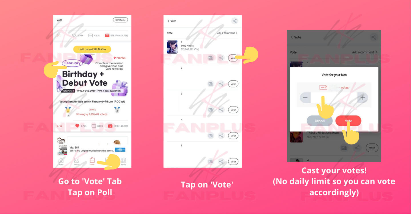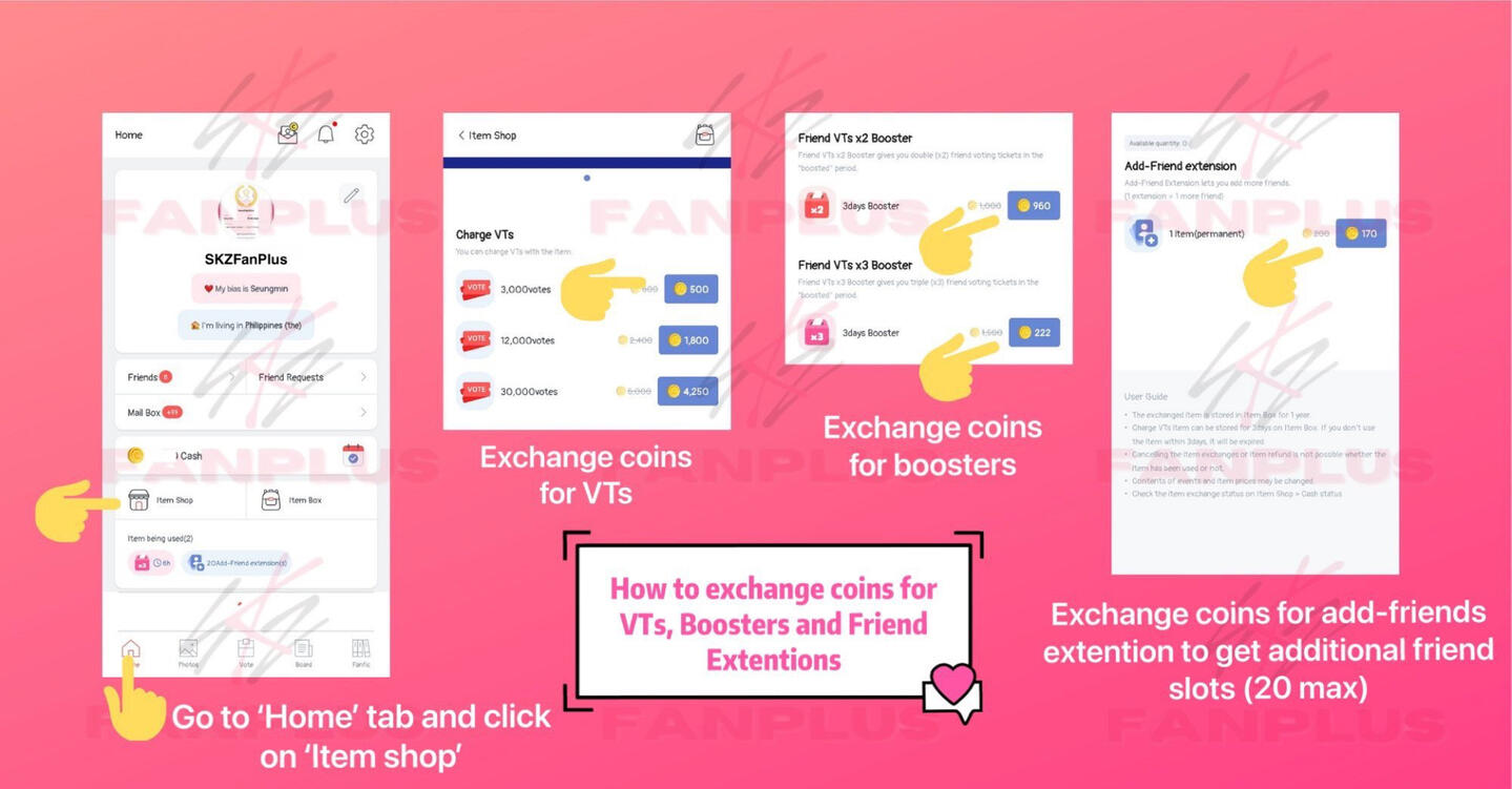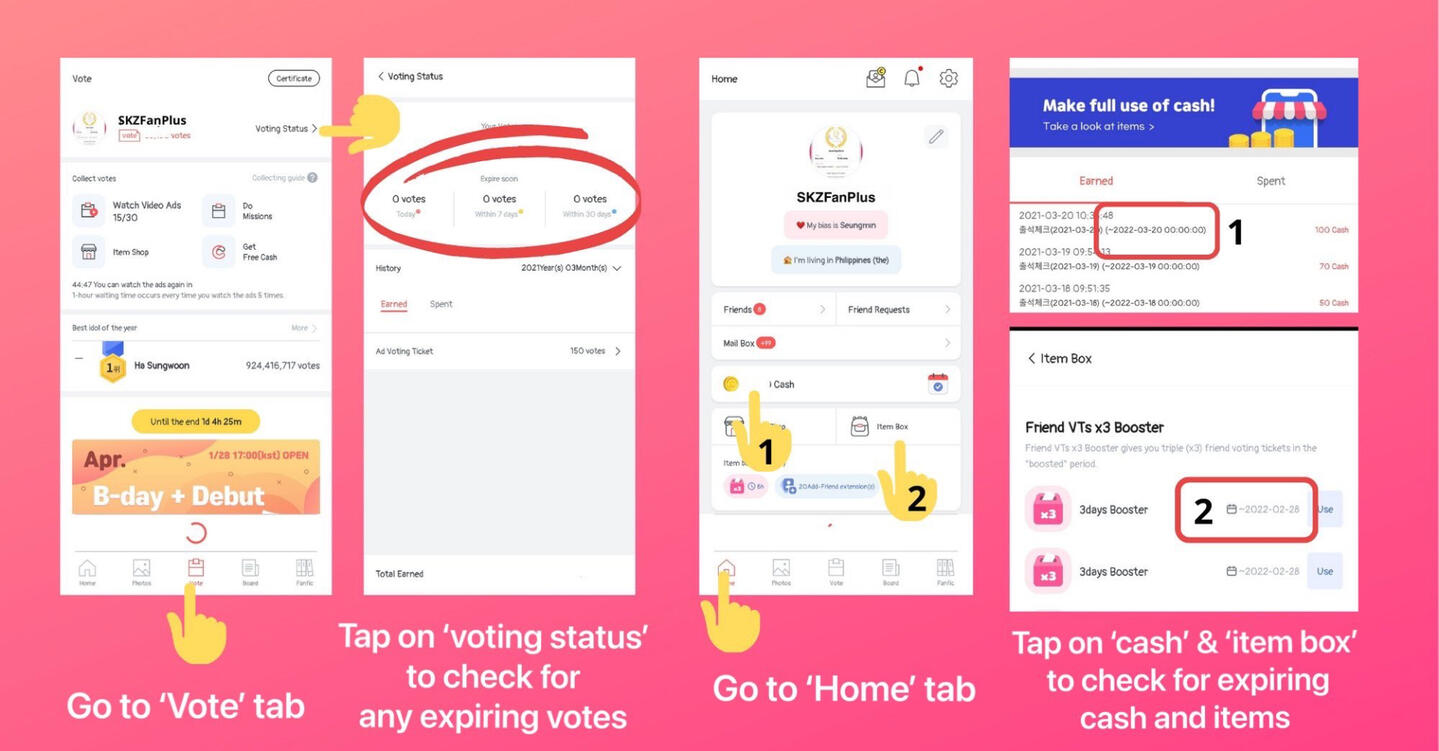 NOTE: Activate boosters only during an ongoing poll (votes expire after 90 days)& as close to 0 KST as possible before collecting votes from friends to maximize its usage
